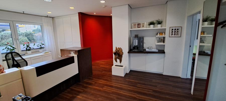 Die Räumlichkeiten sind funktional und zukunftsorientiert aufgebaut. Auf einer Ebene befinden sich die Rezeption, drei Behandlungsräume, der Sterilisationsbereich sowie das Röntgen. Im ersten Obergeschoss liegen der Sozialraum, zwei Büroräume, ein Lager sowie ein kleines Labor. Die Räume im Obergeschoss sind bereits so vorbereitet, dass bei Bedarf zusätzliche Behandlungsräume eingerichtet werden können, wodurch sich für eine zukünftige Erweiterung interessante Entwicklungsmöglichkeiten ergeben.